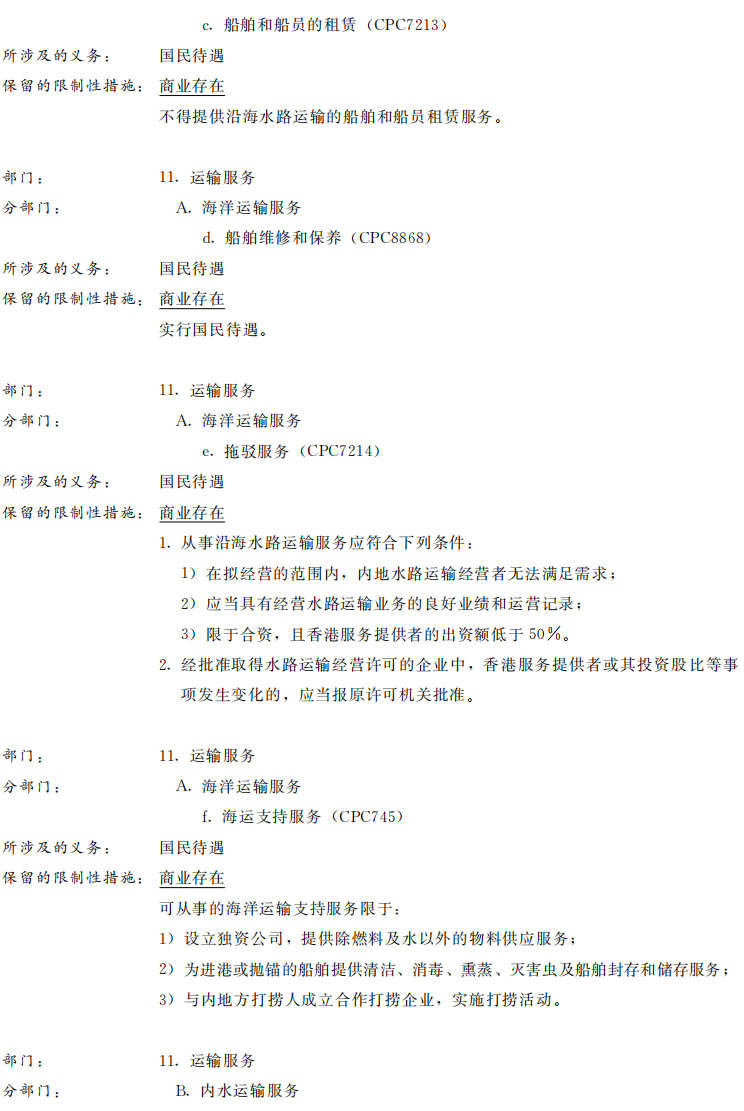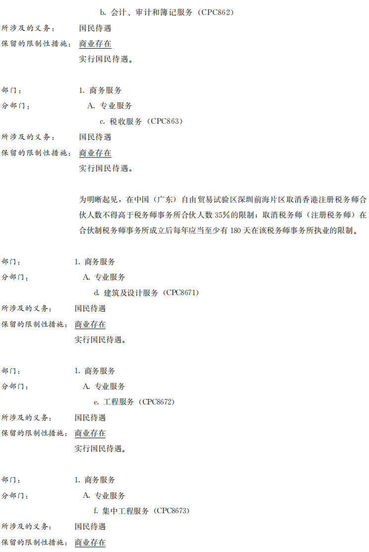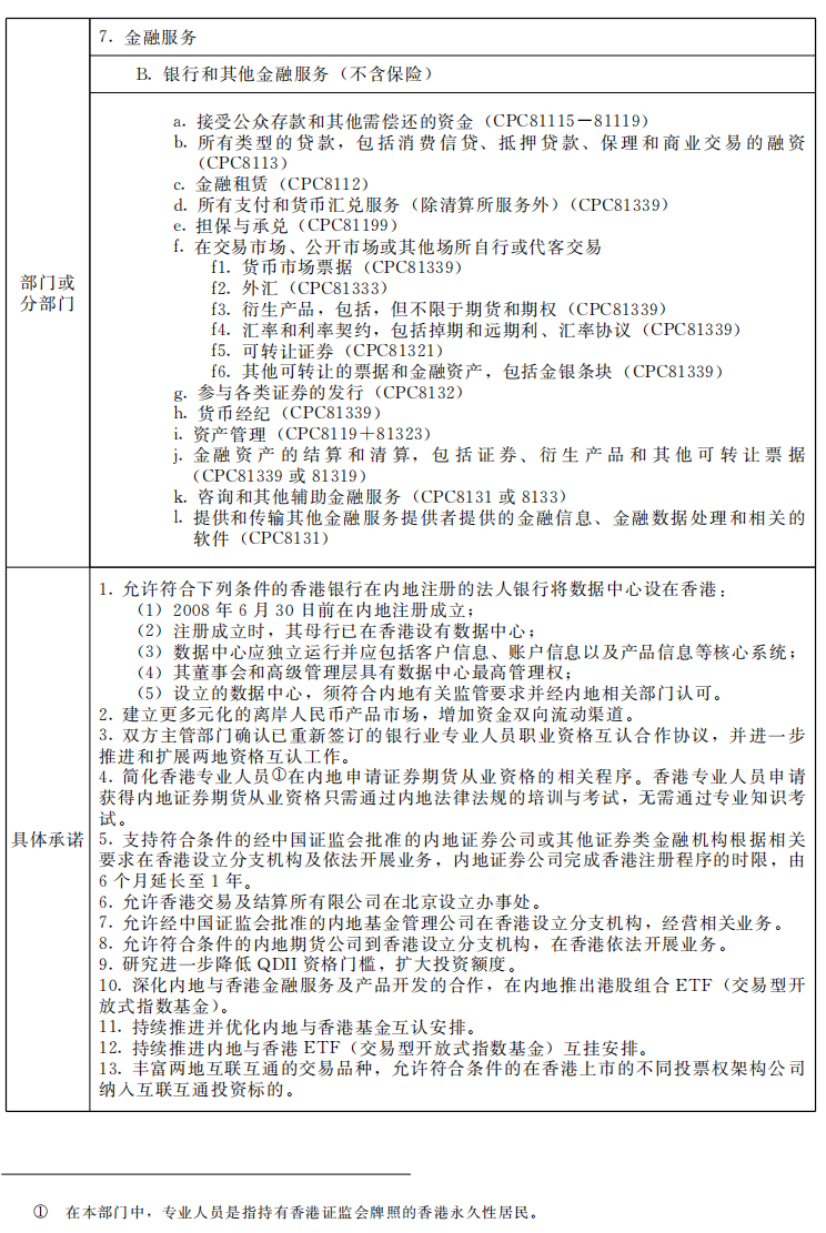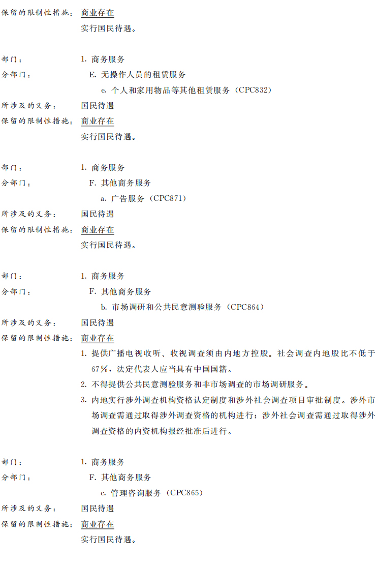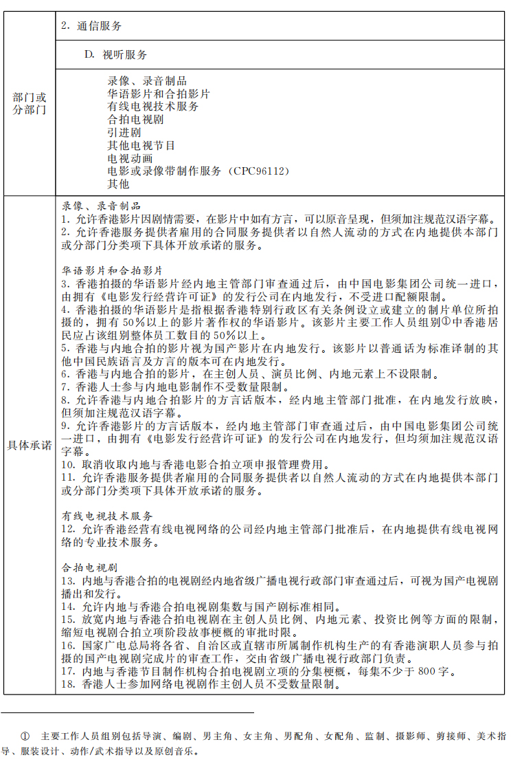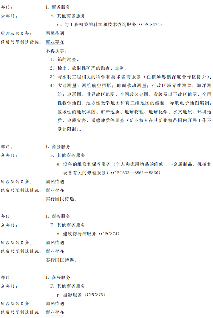 二、在《服务贸易协议》和《修订协议》的基础上进一步扩大内地对香港服务领域开放,对《服务贸易协议》附件1《内地向香港开放服务贸易的具体承诺》表1《对商业存在保留的限制性措施(负面清单)》进行缩减和修订,经进一步修订内容详见本协议附件表1。在跨境服务领域内地对香港增加新的开放措施,对《服务贸易协议》附件1表2《跨境服务开放措施(正面清单)》的进一步修订内容详见本协议附件表2。本协议附件表1和表2分别取代经《修订协议》修订的《服务贸易协议》附件1表1和表2。