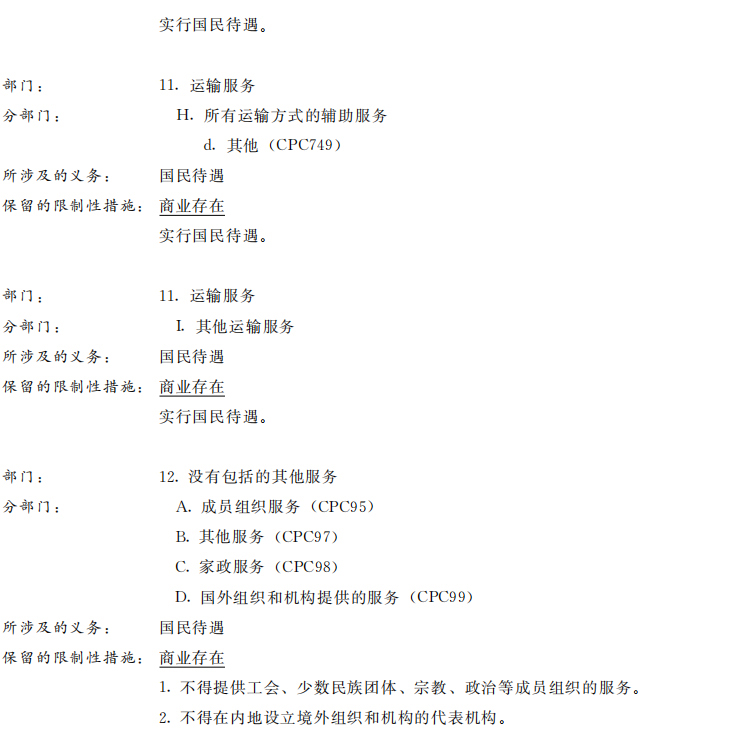 四、为明晰起见,《服务贸易协议》中未被本协议修订的条款仍然有效并继续实施,而其他条款将按原有条款继续实施直至本协议实施为止。