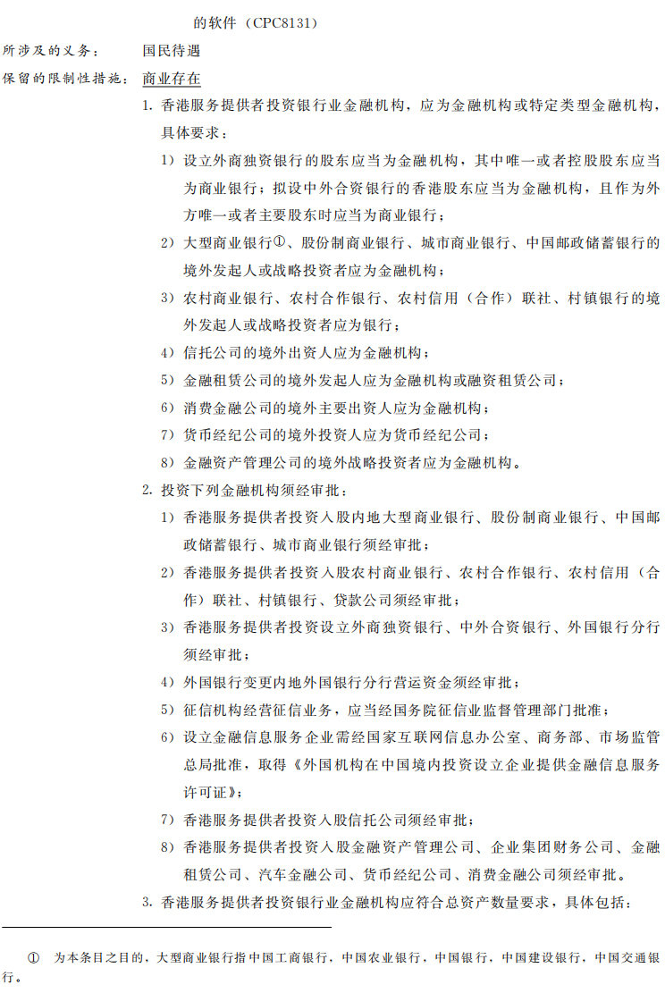 (一)就内地而言,载于世界贸易组织GATS/SC/135/Suppl.1号文件的承诺;