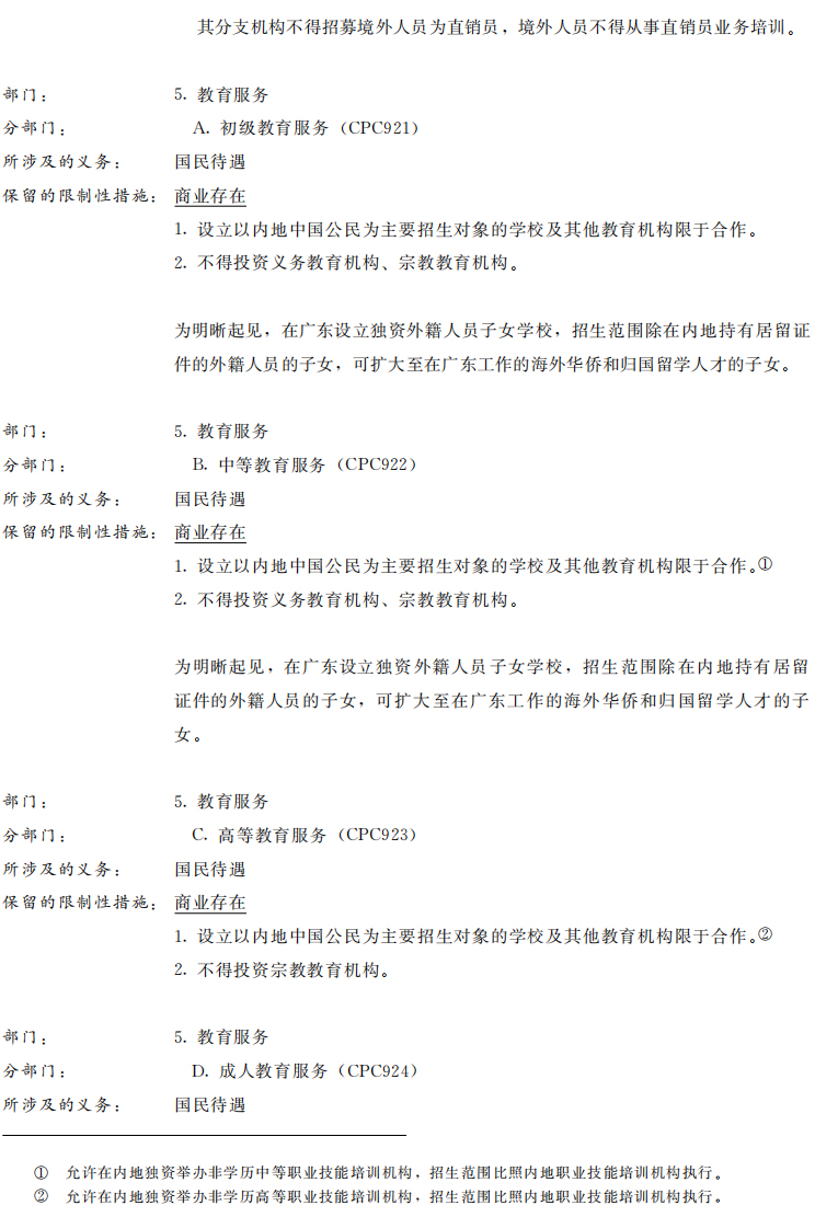 提供教育服务的香港服务提供者,倘为非盈利为目的的实体,则无从事实质性商业经营要求。”