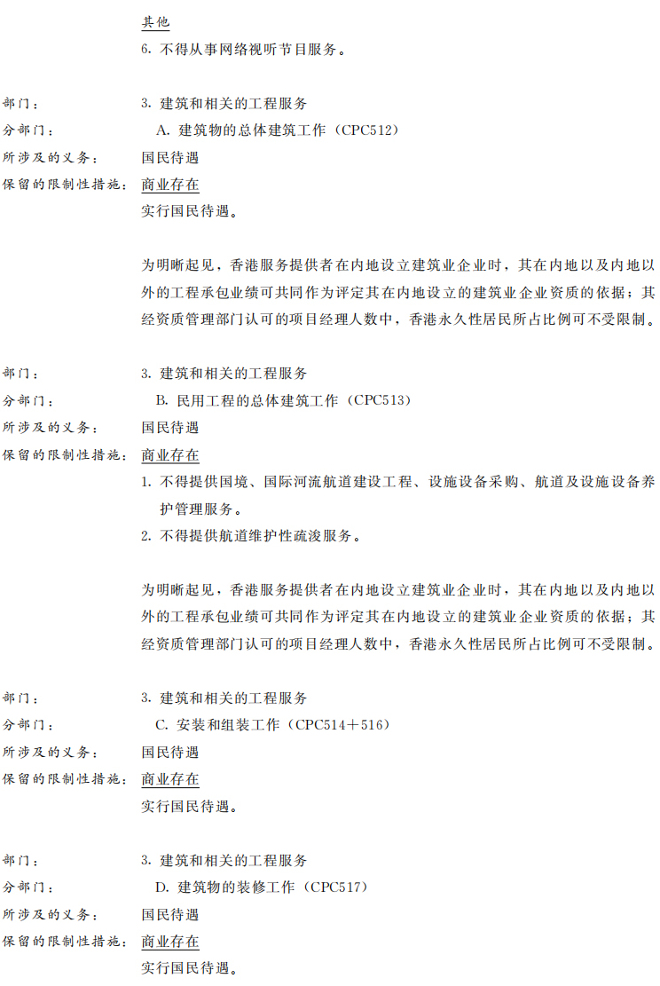 提供建筑及相关工程服务的香港服务提供者,应已在香港注册或登记设立并从事实质性商业经营5年以上(含5年);”