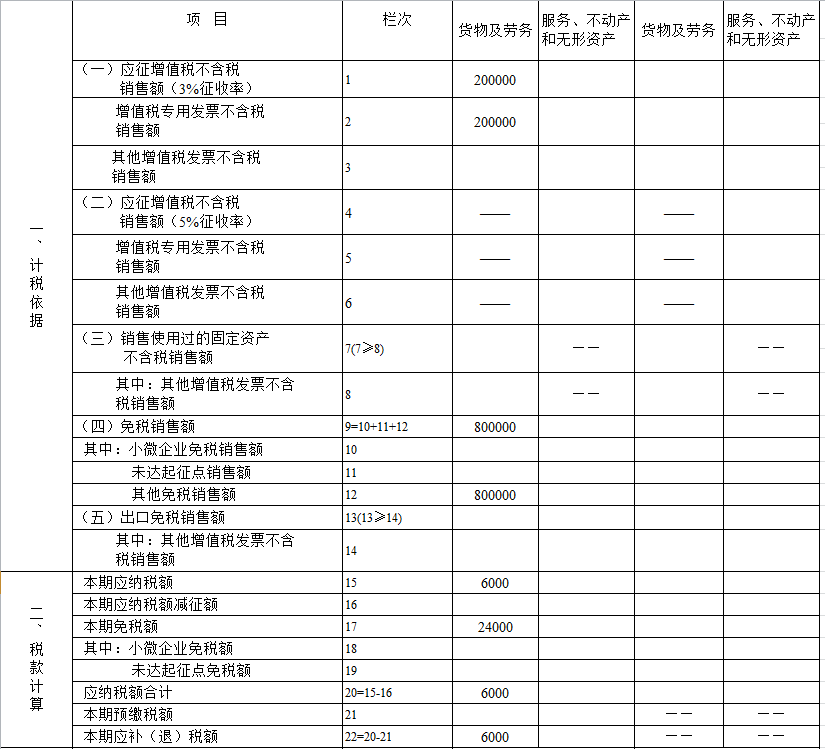 注意事项2:小规模纳税人销售额包括开具普票销售额、开具专票销售额、未开票销售额。如,甲公司为小规模纳税人,当期开具专票5万,开具普通发票20万,未开票收入8万。则甲公司未开票收入与开具普通发票都不能享受增值税免税。小规模纳税人增值税申报表正确填报为您整理如下: