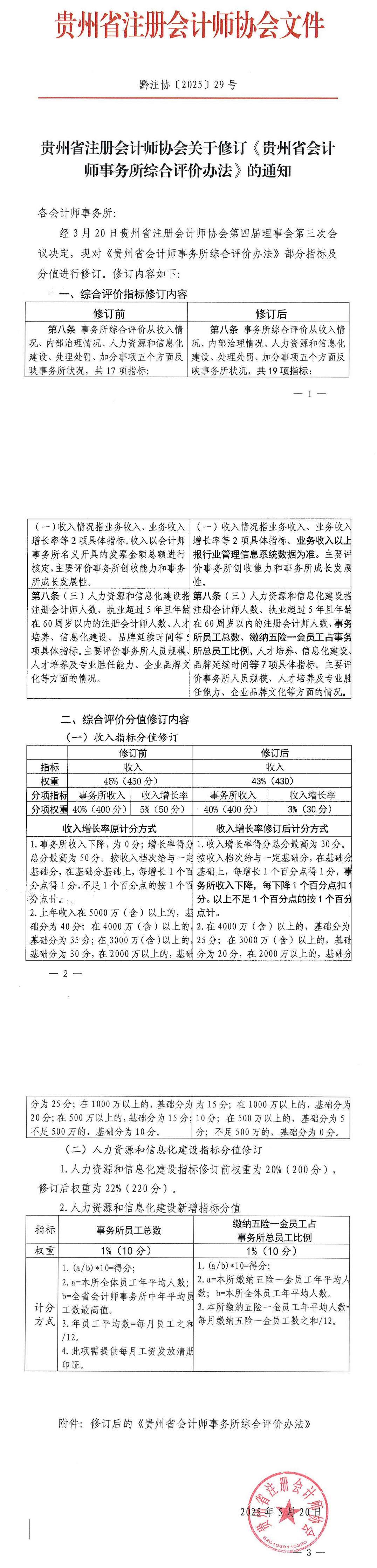 贵州省注册会计师协会关于修订《贵州省会计师事务所综合评价办法》的通知