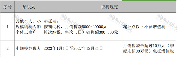 个人和个体户发生应税行为的销售额未达到增值税起征点的,免征增值税;达到起征点的,全额计算缴纳增值税。
