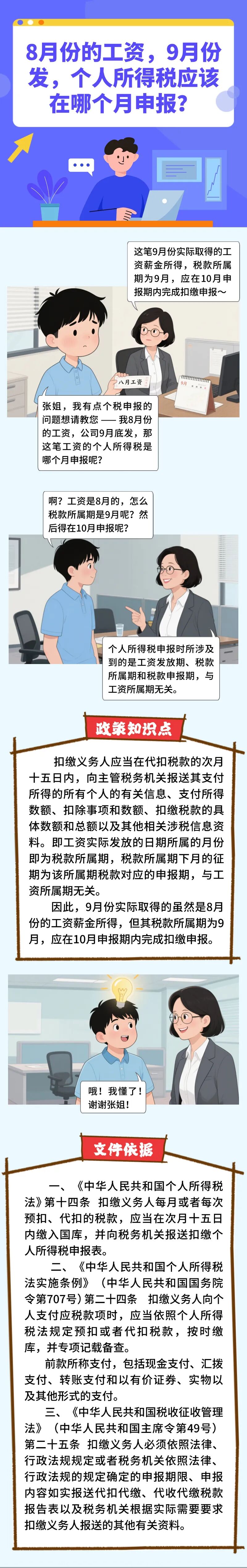 8月份的工资,9月份发,个人所得税应该在哪个月申报?