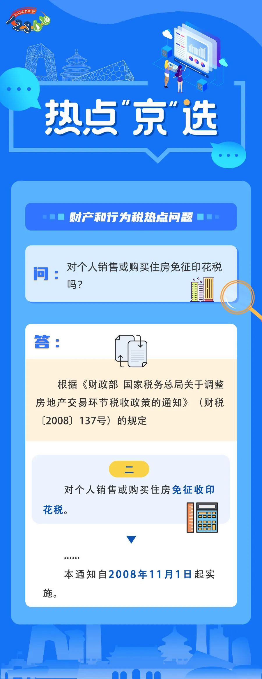 热点“京”选 | 对个人销售或购买住房免征印花税吗?