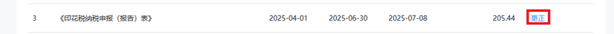 找到需要修改的印花税报表,点击右侧的【更正】按钮。