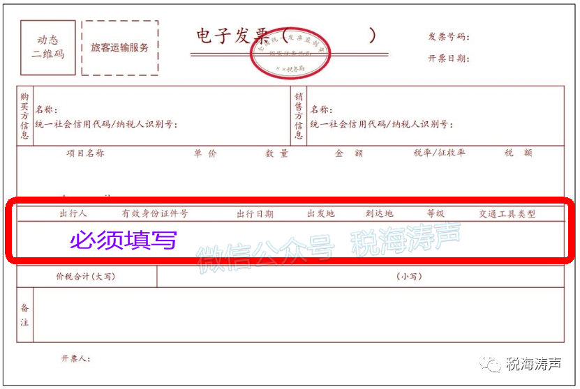 “电子发票(普通发票)”系全面数字化电子发票(简称数电发票,是“电子发票”的一种)中的一类。而根据特定业务标签生成的“旅客运输服务”特定业务发票,票面基本内容包括“购买方信息(含名称、统一社会信用代码/纳税人识别号)”、“出行人”、“有效身份证件号”等栏次。