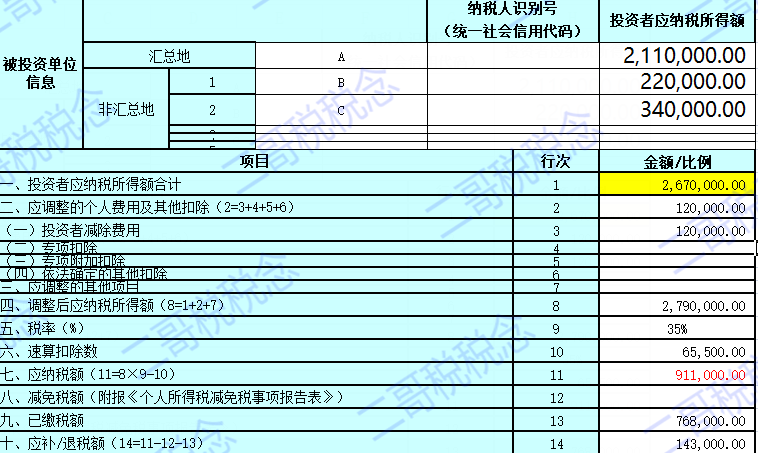 核对各投资单位应纳税所得额、应调整的各项扣除费用和适用的税收优惠,系统会自动为您计算出应补税款或应退税款。