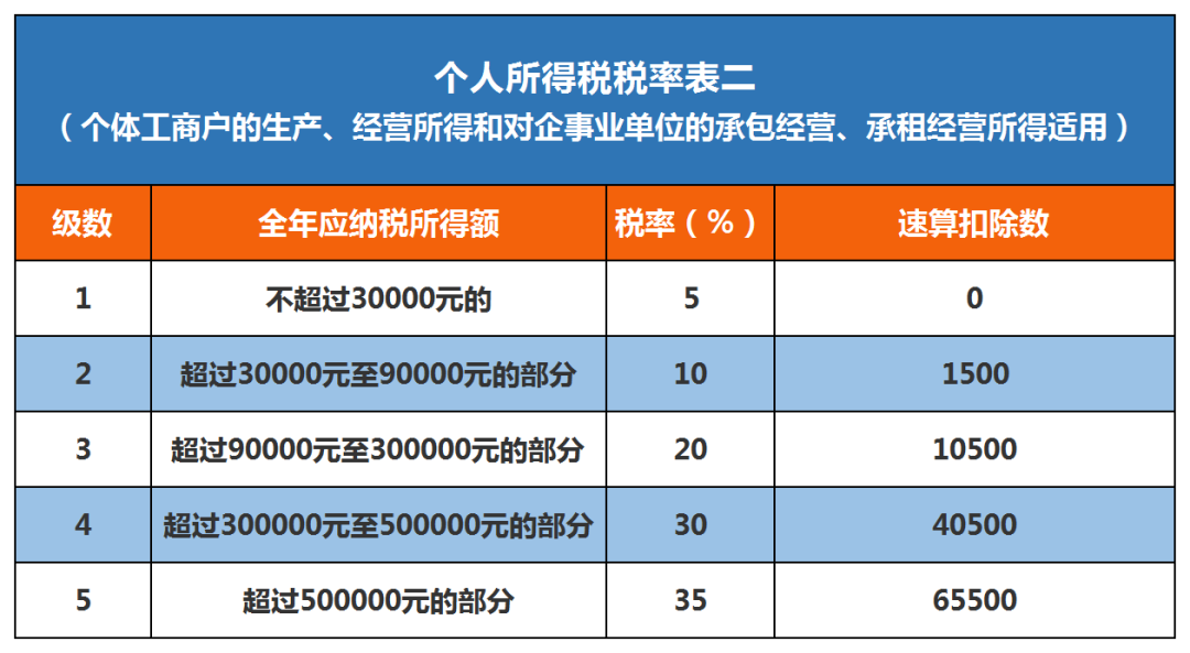 个人所得税税率表(经营所得适用)