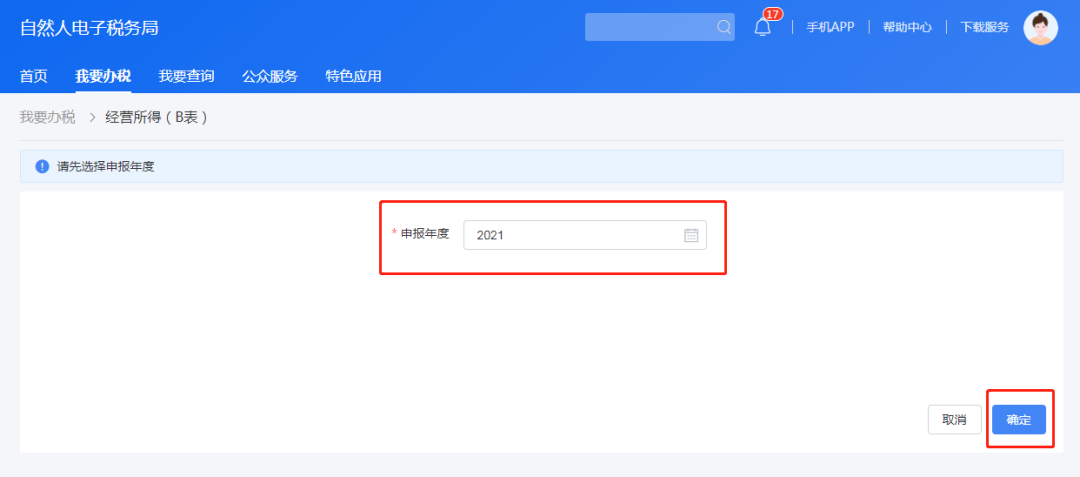 选择申报年度,点击“确定”。