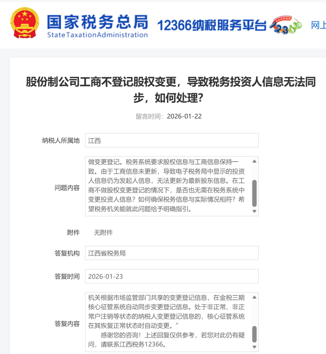 股份制公司工商不登记股权变更,导致税务投资人信息无法同步,如何处理?