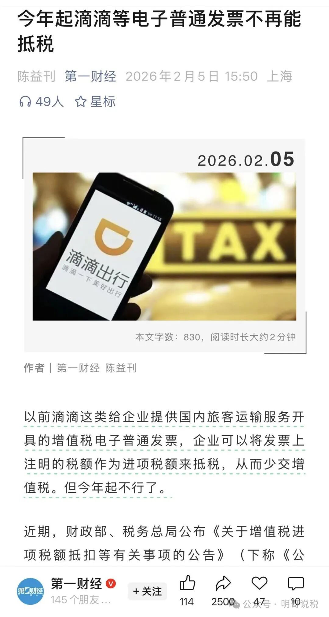 这一改动引发了大家关注。有人提出疑惑,像滴滴这类网约车开具的电子发票(普通发票)是否还像此前一样可作为进项税额来抵扣增值税?