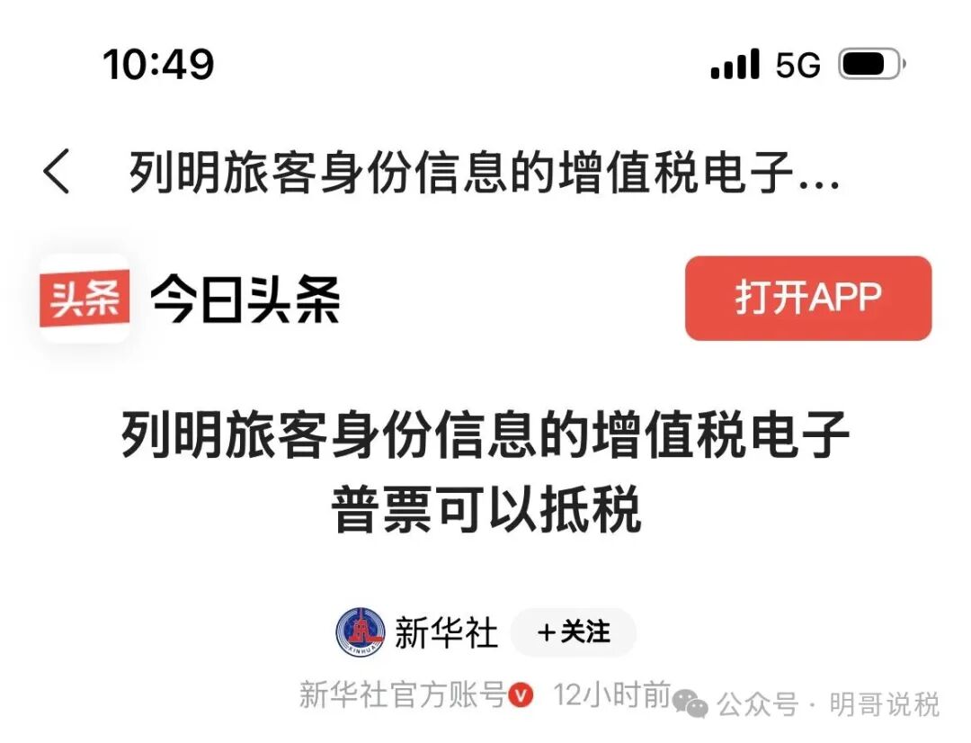 新华社&经济日报:列明旅客身份信息的增值税电子普票可以抵税