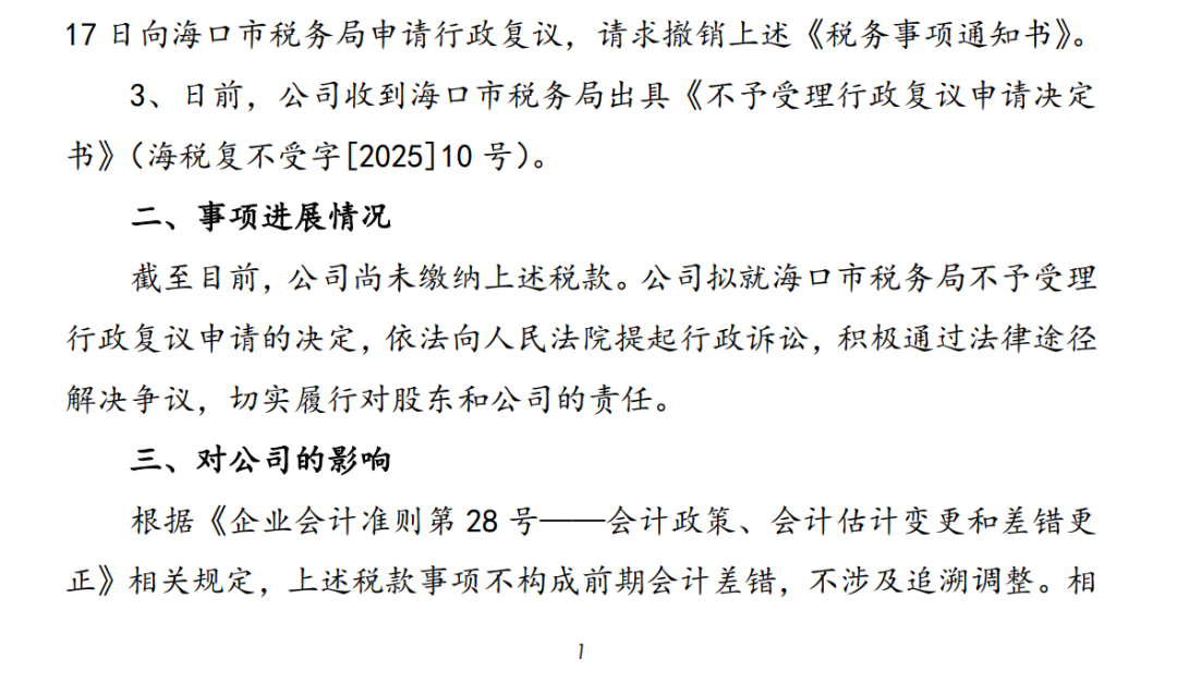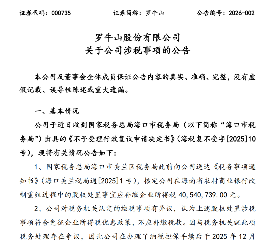 罗牛山:因改制重组补税的行政复议申请终于获得受理