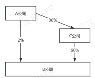 简单算一下:A 公司直接持股 2% + 通过 C 公司间接持股(30%×60%=18%),合计持有 B 公司 20% 的股权。
