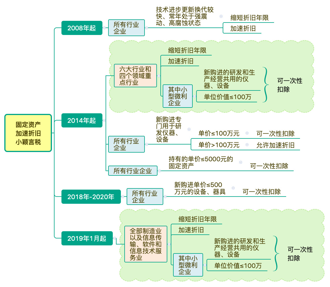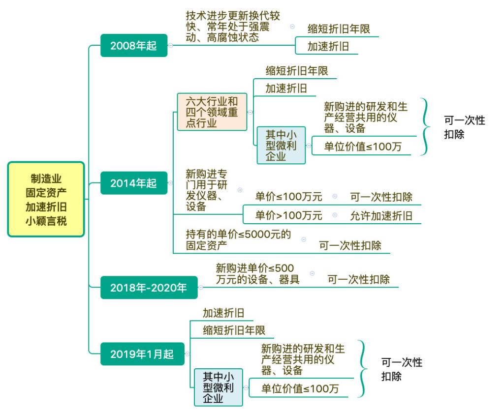 一是六大行业和四个领域重点行业企业新购进的固定资产,均允许按规定折旧年限的60%缩短折旧年限,或选择采取加速折旧方法;