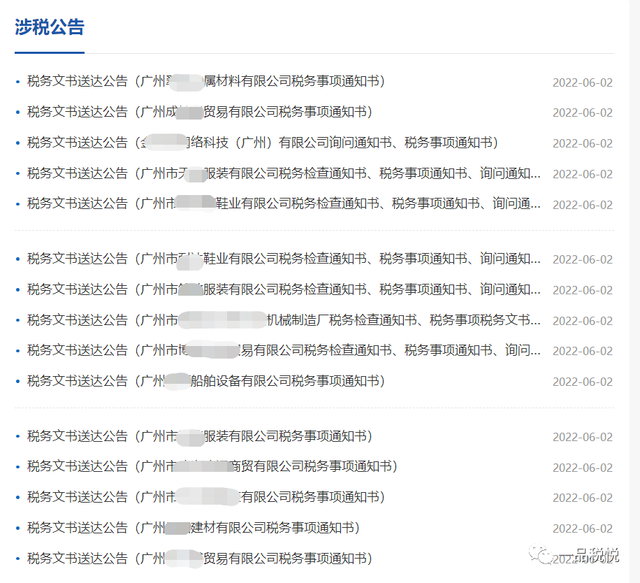 今天无意翻了下广州税务的稽查相关税务文书,不翻不知道,一翻吓一跳,光202262号的税务文书就30个,发个截图,大家感受下: