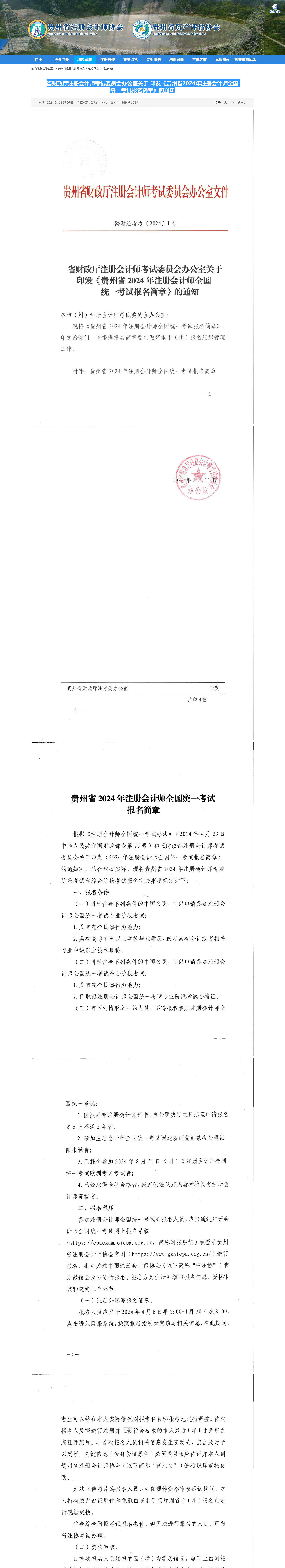 贵州省财政厅注册会计师考试委员会办公室关于印发《贵州省2024年注册会计师全国统一考试报名简章》的通知