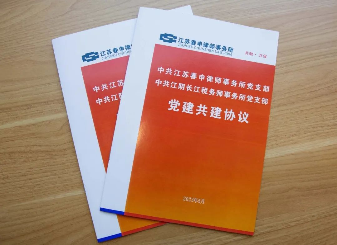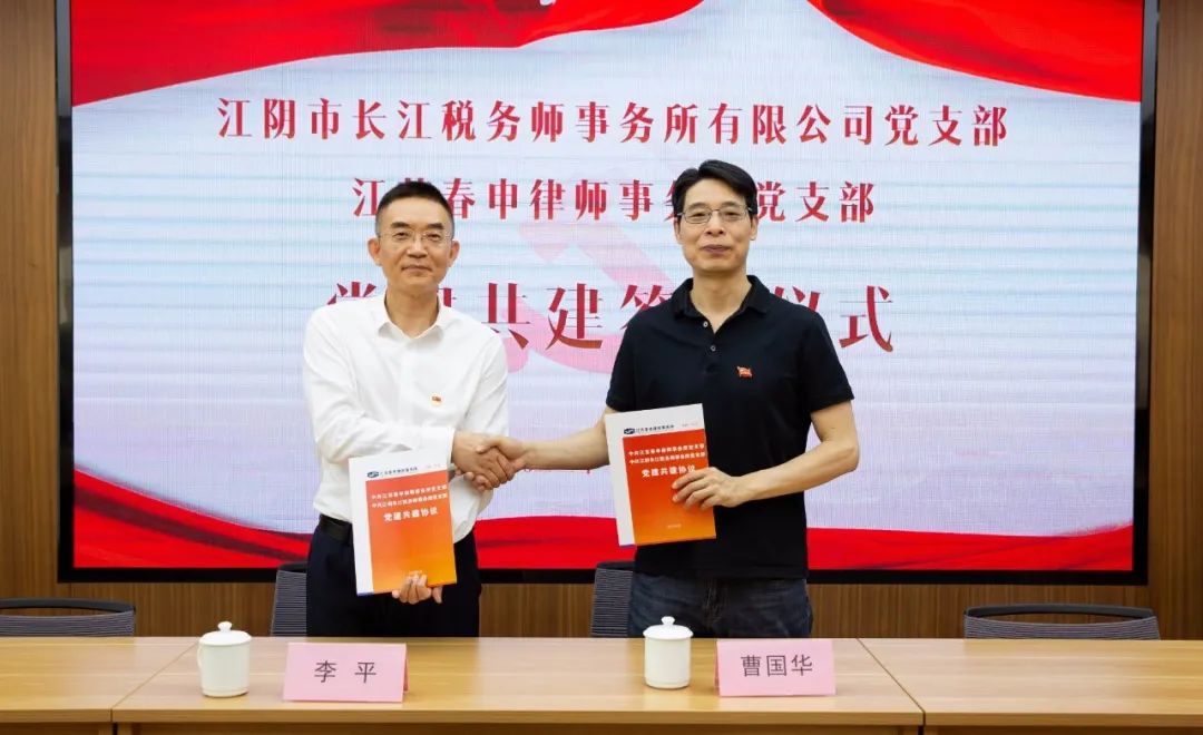 为认真贯彻落实党的二十大精神,创新党建工作载体,提高党建工作水平,着力构建“资源共享、优势互补、共建共享”党建新模式,2023年5月19日下午,江阴市长江税务师事务所有限公司党支部与江苏春申律师事务所党支部举行党建共建签约仪式。