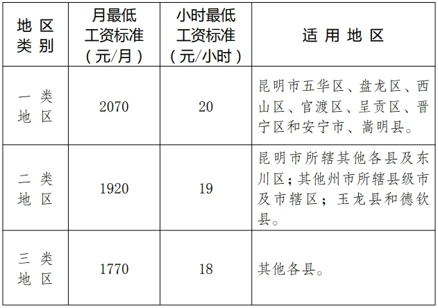 (三)三类地区月最低工资标准调整为1770元;小时最低工资标准调整为18元。