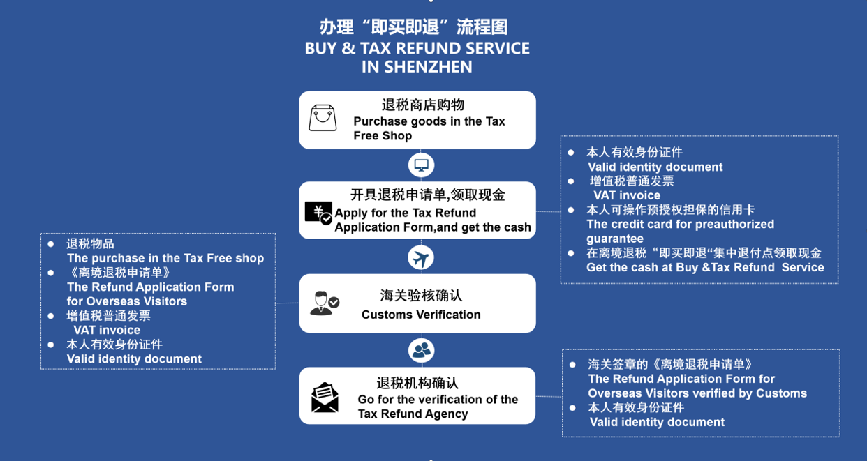 (1) Shenzhen will further expand the network of tax refund stores, "Instant Tax Refund" centralized refund points, and designated tax refund ports, while optimizing tax refund services. Specific arrangements will be dynamically updated through official announcements.