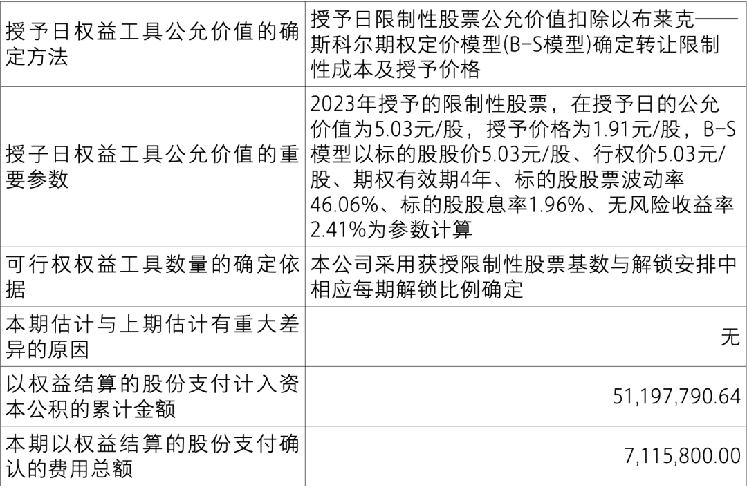 根据公司第七届董事会第十五次会议、第七届监事会第十二次会议审议通过的《关于向 2022 年限制性股票激励计划激励对象授予预留限制性股票的议案》,公司于 2023 年度以每股人民币 1.91 元向 21 名被激励对象授予 310 万股限制性股票。
