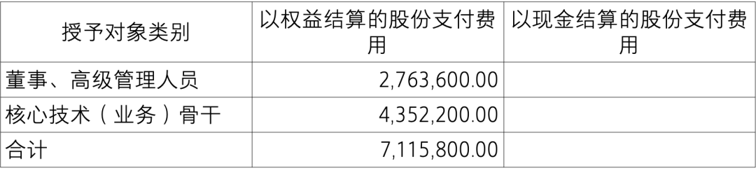 3、本期股份支付费用