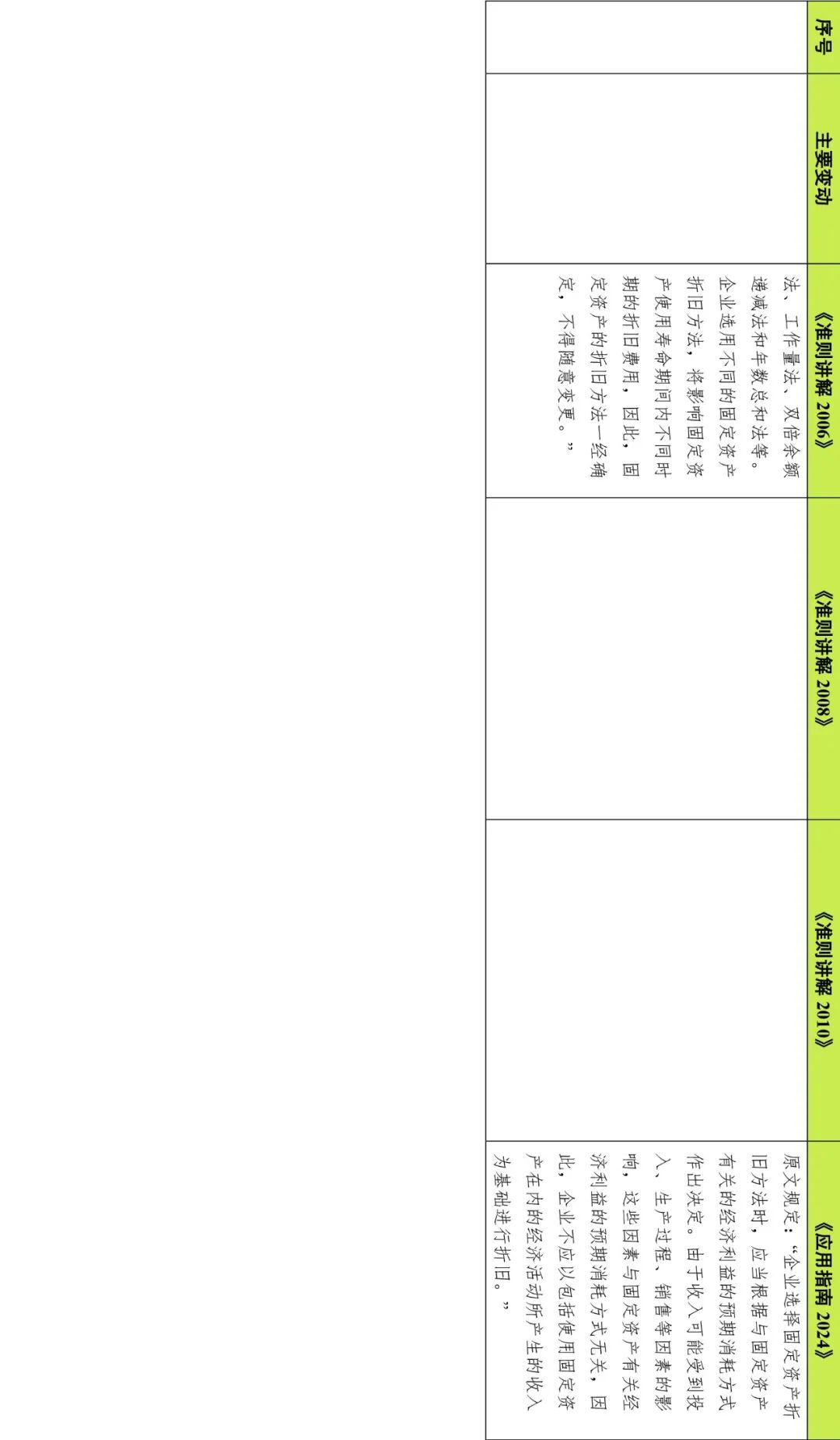 根据《企业会计准则解释第10号——关于以使用固定资产产生的收入为基础的折旧方法》新增内容。强调固定资产折旧方法应反映固定资产自身经济利益的消耗方式,不应以未来收入实现方式为基础计提折旧。 |