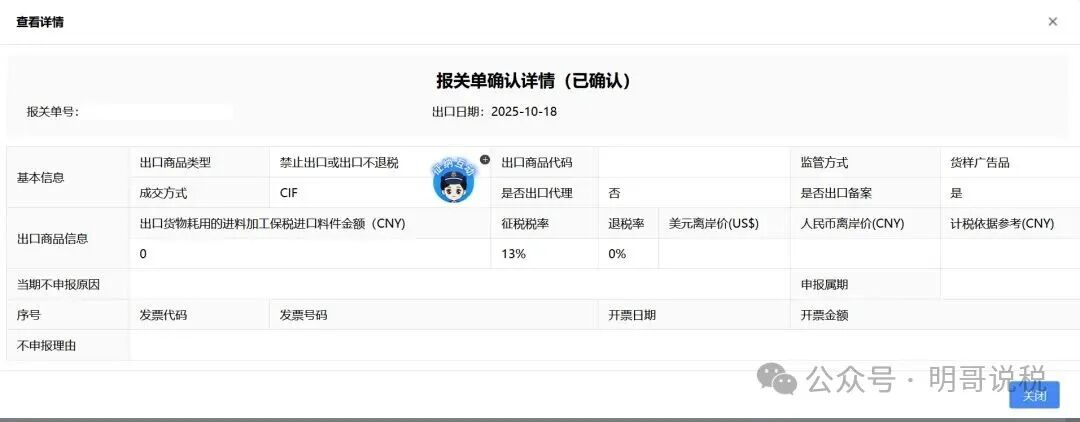 (4)选择“用于出口退税”“适用出口免税”选项,可直接保存。